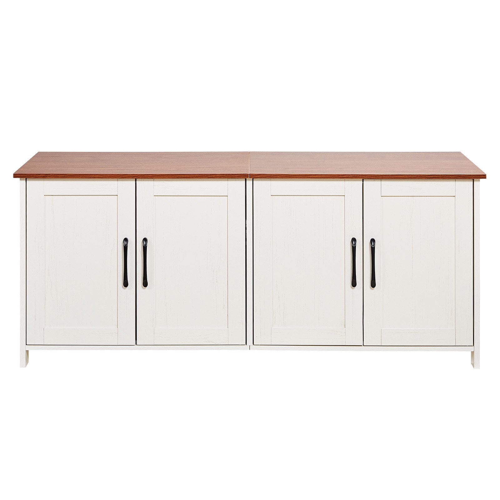 Cat Litter Box Enclosure For Multi Cats, 47.2 In Hidden Litter Box Cabinet With 4 Doors & 2 Entries, Indoor Cat Washroom, Wooden Kitty House Furniture, Fit Most Litterboxes, Brown & White