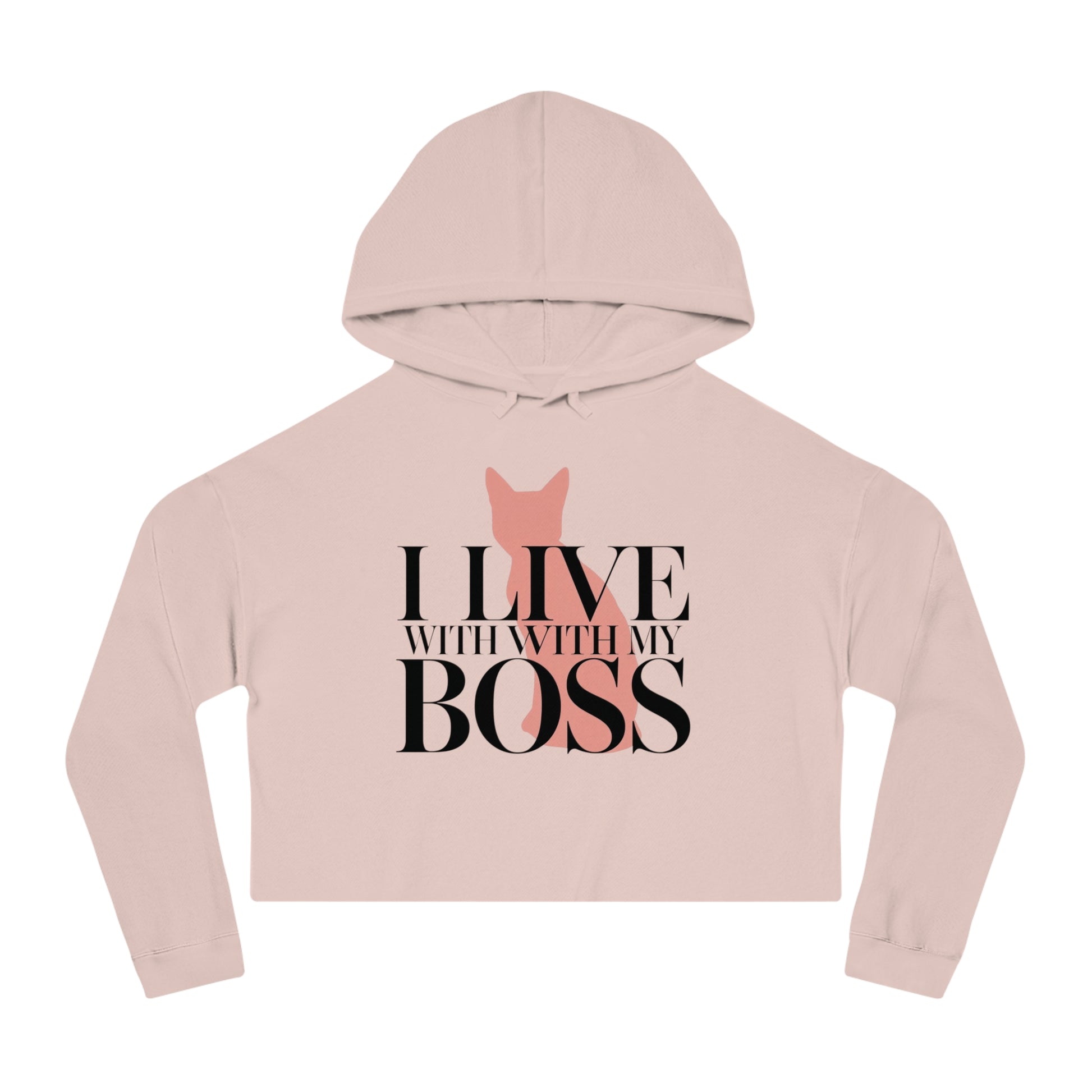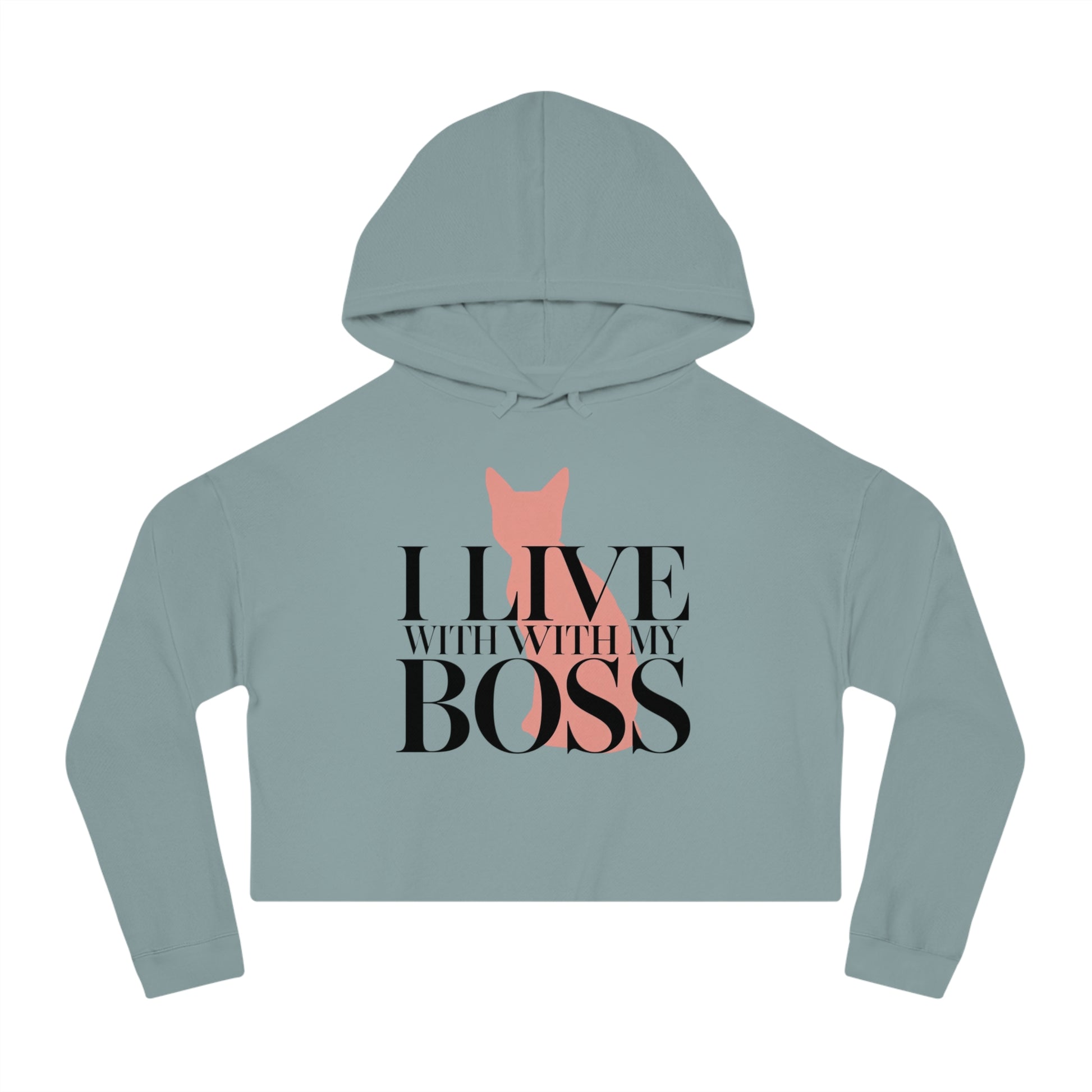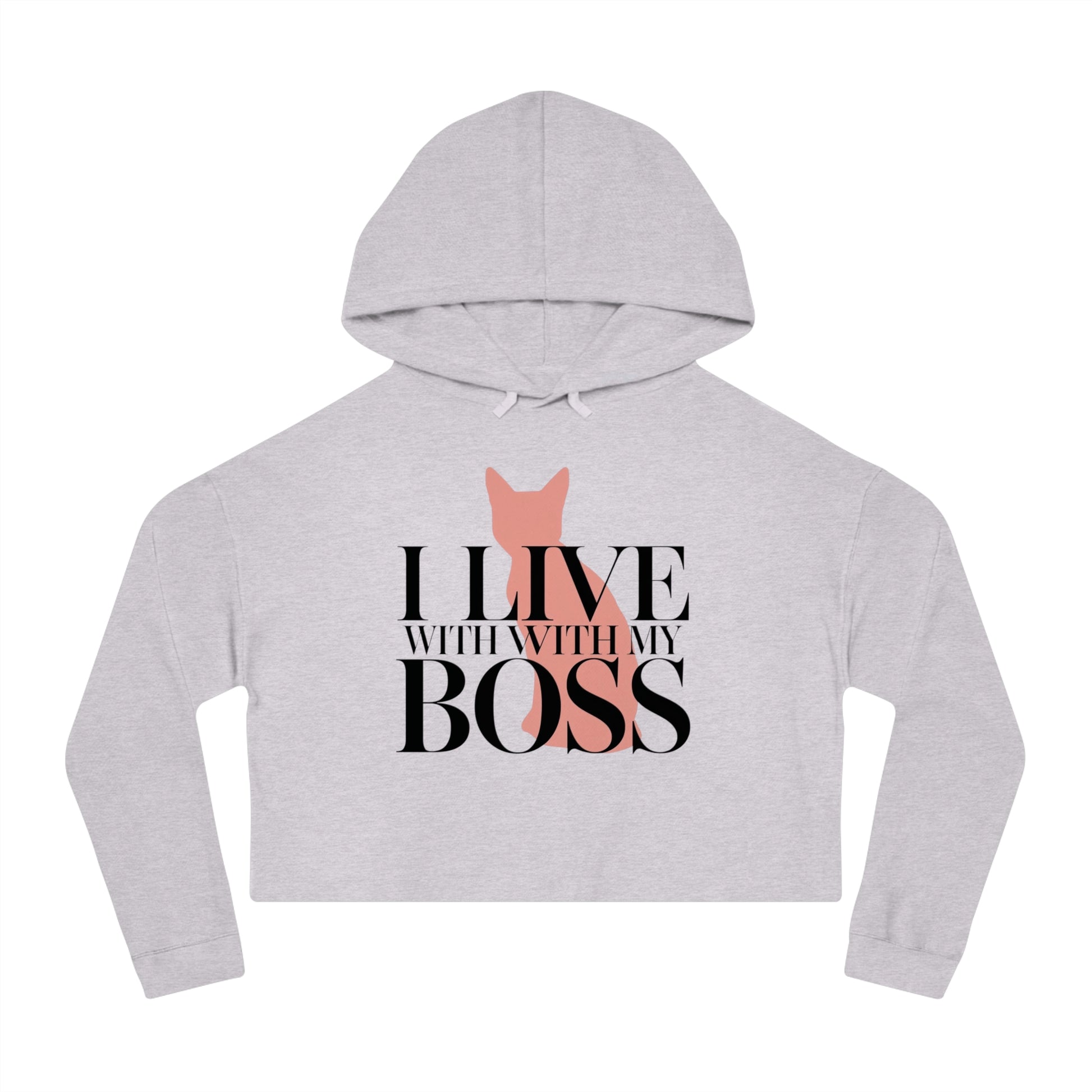 I Live With My Boss Cat Cropped Hoodie | Cat Mom Sweatshirt